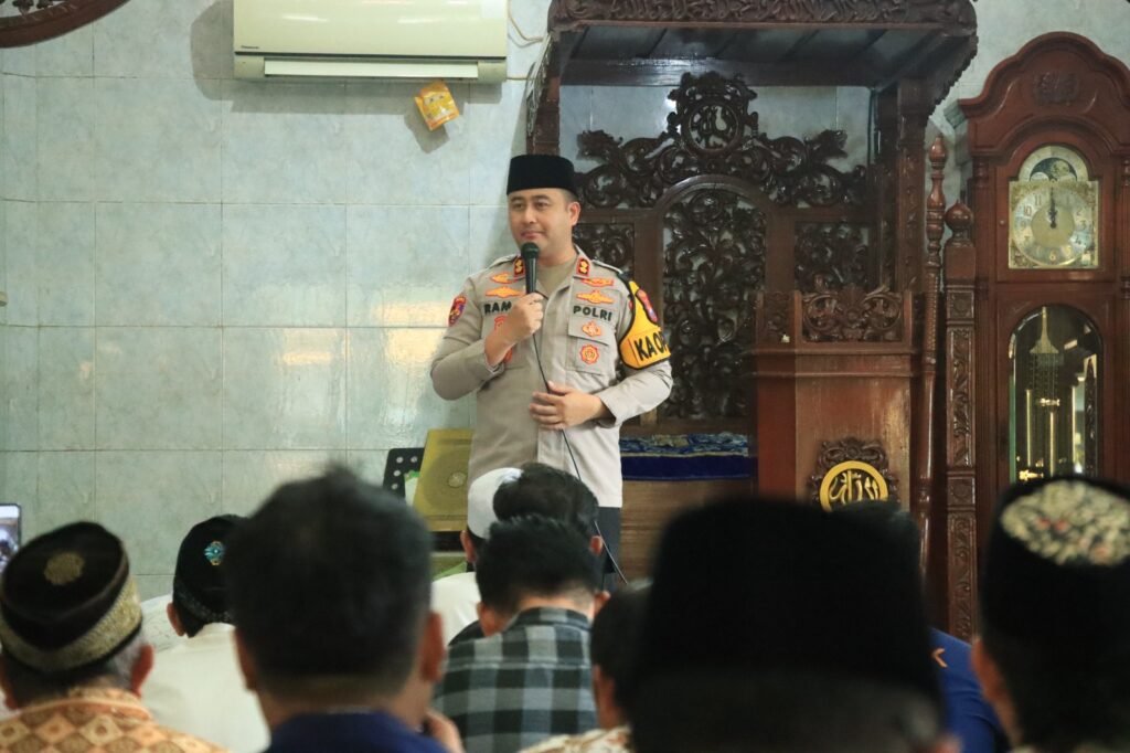 GRESIK – Upaya mempererat hubungan antara kepolisian dan masyarakat terus dilakukan jajaran Polres Gresik selama bulan suci Ramadan. Salah satunya melalui kegiatan silaturahmi dan ibadah bersama yang dilaksanakan Kapolres Gresik AKBP Ramadhan Nasution di Masjid Besar Ainul Yaqin, Jalan Prapatan Karangandong, Kecamatan Wringinanom, Kabupaten Gresik, Jumat (6/3/2026).